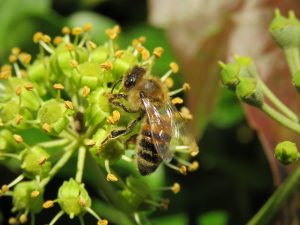 Die mittlerweile bei uns heimische Efeu-Seidenbiene hat sich sogar fast ausschließlich auf Efeu-Pollen für die Aufzucht ihrer Brut spezialisiert.
