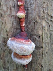 Baumschwämme an totem Holz beherbergen spezialisierte Käfer und Fliegen. Leider herrscht landläufig noch die Meinung vor, dass der Wald aus ästhetischen und forstwirtschaftlichen Gründen vom Totholz gesäubert werden müsse.