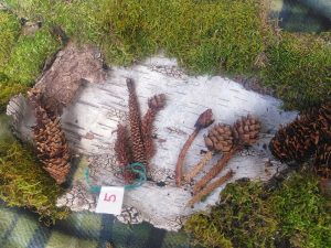 Oft sehen wir die Tiere, die im Wald, auf dem Feld oder in der Hecke leben nicht. Aber sie hinterlassen Spuren. Nicht nur Pfotenabdrücke sondern auch die Reste ihrer Mahlzeit geben uns Hinweise darauf, welches Tier hier am Werk war. Besonders markant sind die Fraßspuren an Nüssen oder Zapfen. Zwischen den Schuppen der Fichtenzapfen stecken die nahrhaften Samen. Jedes Tier geht einen anderen Weg, um an die Leckerbissen zu gelangen. Während der Specht den Zapfen mit seinem Schnabel und der langen Zunge bearbeitet, beißen Eichhörnchen und Mäuse die Schuppen ab. Die kleinen Mäuse nagen die Schuppen fein säuberlich ab, so dass nur die glatte Spindel zurück bleibt. Eichhörnchen mit ihren langen Nagezähnen sind viel gröber, an der Spindel hängen immer noch zahlreiche Faserreste.