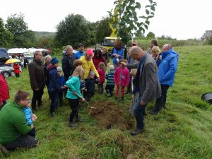 Offiziell eröffnete Dr. Margrethe Schmeer, Bürgermeisterin der Stadt Aachen das Fest. Sie dankte den Veranstaltern und den rund 20 Ausstellern für ihr Engagement im Streuobstwiesenschutz. Dr. Manfred Aletsee, Geschäftsführer der NABU-Naturschutzstation, moderierte die Veranstaltung. „Wir möchten mit dem Obstwiesenfest auf die besondere Bedeutung und den Wert der Streuobstwiesen für die Landschaft und die Biodiversität aufmerksam machen“, so Dr. Aletsee. Claus Mayr, 1. Vorsitzender des NABU Aachen, wies darauf hin, dass der Bestand der Streuobstwiesen in Aachen alleine in den letzten 11 Jahren um fast 30 Prozent zurückgegangen sei. Der Bestand des Steinkauzes, einer Charakterart dieses Lebensraums, ging in den letzten 22 Jahren um fast 50 Prozent zurück. Bei der anschließenden Pflanzung eines Apfelbaumes der Sorte Aachener Hausapfel lud der NABU alle Interessierten ein, sich künftig an den Obstbaumpflanzungen des NABU zu beteiligen.
