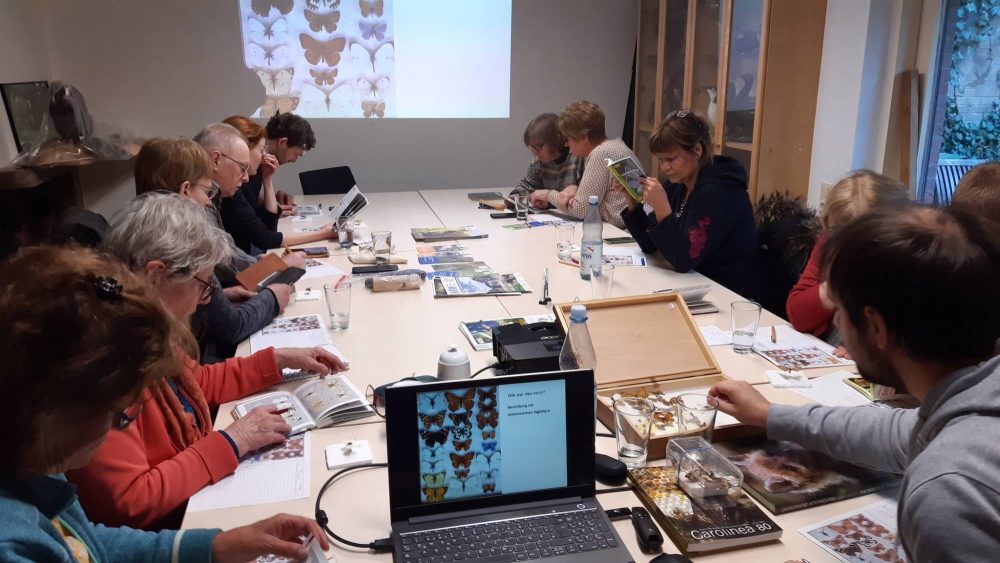 Der Arbeitskreis Schmetterlinge weiß sich auch ohne schönes Schmetterlingswetter zu beschäftigen. Bei den monatlichen Treffen in der NABU-Geschäftsstelle werden Untersuchungsergebnisse vorgestellt und mit diversen Übungen die Schmetterlingsbestimmung geübt.