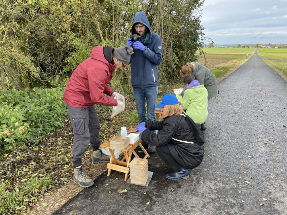 Der Arbeitskreis Wildbienen, hier bei der Arbeit an dem mehrjährigen Hummel-Monitoring. Es werden Hummeln und Wildbienen erfasst. Auch ein wesentlicher Aspekt der Arbeit ist eine Untersuchung von standardisierten Nisthilfen und deren Bedeutung für die einzelnen Arten. Neben den wissenschaftlichen Exkursionen werden auch Ausflüge angeboten, die an das Thema und die Bedeutung der Wildbienen heranführen. Weitere Informationen über den Arbeitskreis Wildbienen findet man hier: Arbeitskreis Wildbienen