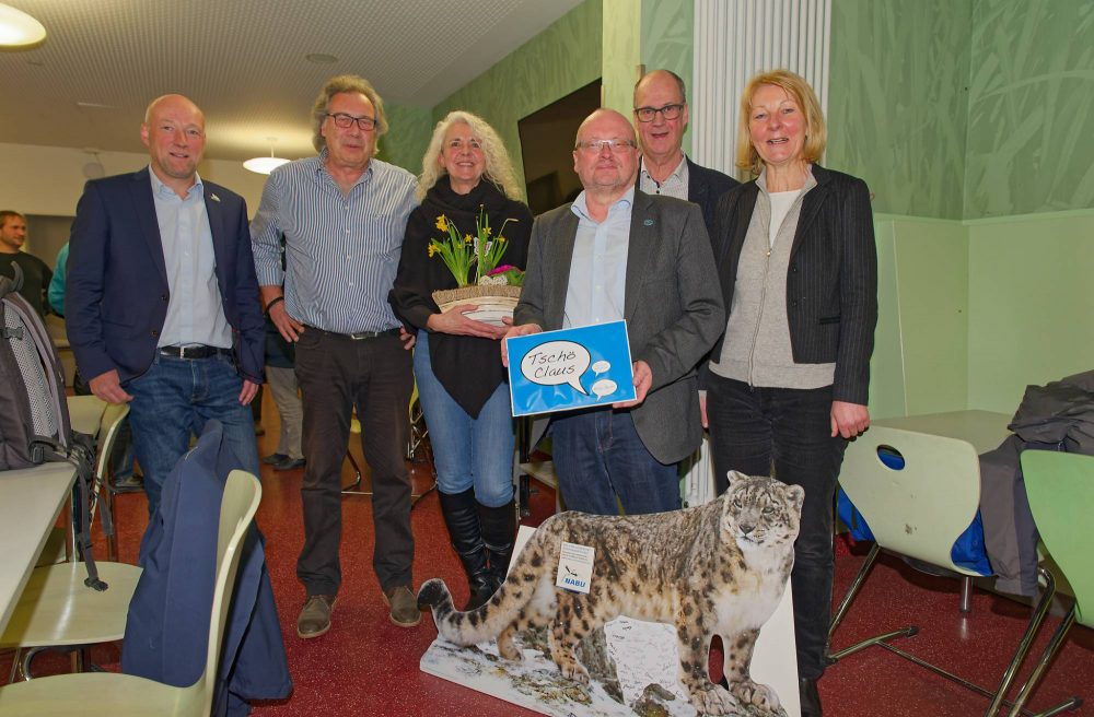 Auf der JHV am 06.03.2023 hat unser langjähriger Vorsitzender Claus Mayr nach 35 Jahren sein Amt niedergelegt. Aus diesem Anlass und um seine großen Verdienste für den NABU zu ehren, überreichten unsere NABU-NRW Vorsitzende Frau Dr. Heide Naderer und NABU-NRW Geschäftsführer Herr Bernhard Kamp ihm die goldene NABU-Ehrennadel. Noch einmal vielen Dank, Claus! Dr. Manfred Aletsee hielt eine kurzweilige Laudatio, Betty Malangré und ich hatten die Ehre dem historischen Moment beizuwohnen.