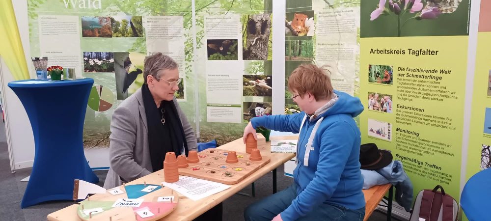 Hoher Besuch auf unserem Stand der EUREGIO Wirtschaftsschau. Frau Oberbürgermeisterin Sibylle Keupen informierte sich ausführlich über unsere Aktionen und Angebote für das Ehrenamt. Dabei ließ sie es sich nicht nehmen eine Runde Natur-Memory mit Monika Cymutta zu spielen. Wer am Ende das Bonbon mit nach Hause nehmen konnte entzieht sich unserer Kenntnis 😉