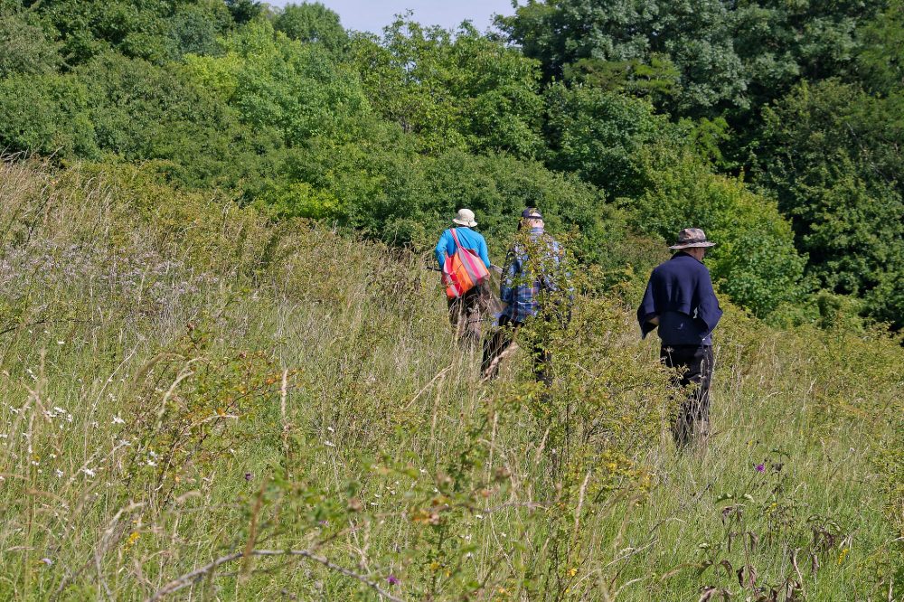Die HeldInnen vom Wilkenberg. Anfang Sommer steht traditionell die Pflege der Magerrasengebiete am Wilkensberg bei Seffent an. Die fachliche Aufsicht und Leitung hat Helmut Kreusch. Wie immer ist es steil und heiß … und lustig.
