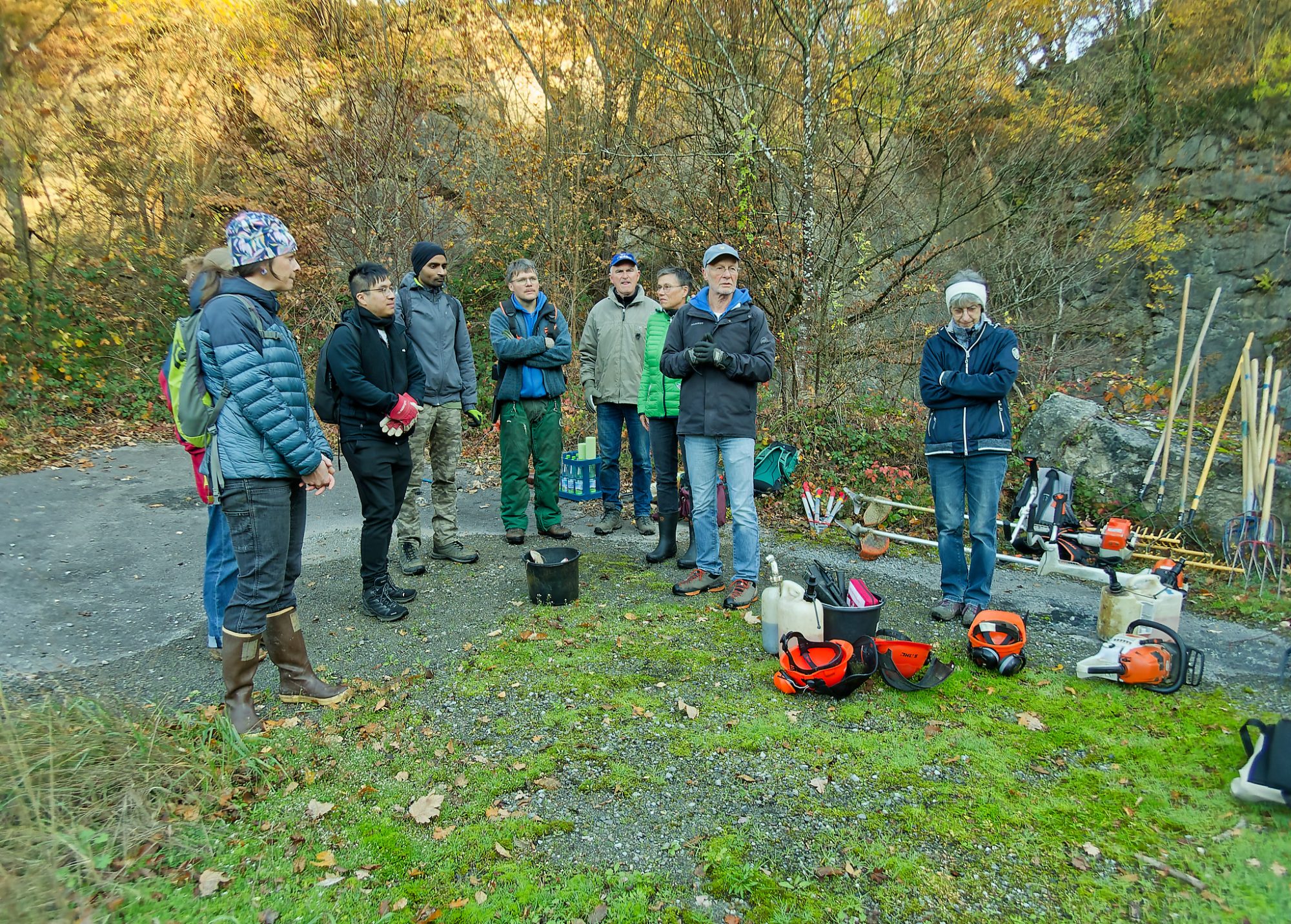 Ein Bestandteil der NABU-Gymnastikübungen im Herbst und Winter ist, neben der Apfelernte und Obstbaumpflanzung, auch die Biotoppflege im Steinbruch Hahn zu erwähnen. Unter der fachlichen Leitung von Helmut Kreusch wird Gestrüpp entfernt, entfichtet und die Wiesen gemäht. Somit erhalten wir einen wertvollen Standort für seltene Pflanzen.