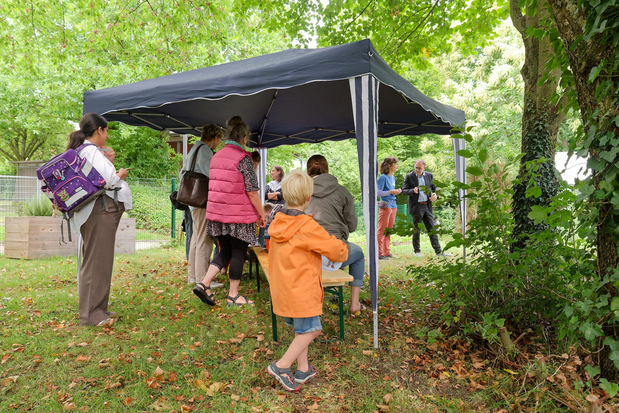 Auch das Sommerfest im Quartiersgarten Gut Kullen war sehr gut besucht. So kurz vor der Kommunalwahl waren auch die Spitzen der Parteien und der Verwaltung zu Gast und begeistert. Im Hintergrund unsere Projektleiterin Helen Kahlenberg im Gespräch mit dem Dezernenten für Umwelt, Klima und Betriebshof Herrn Heiko Thomas.