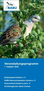 Pünktlich zum Jahreswechsel ist das gemeinsame Programm des NABU-Stadtverbands Aachen, der NABU-Naturschutzstation Aachen, des NABU-Kreisverbands Aachen-Land und des Ornithologischen Vereins Aachen erschienen. Im ersten Halbjahr 2020 werden wieder zahlreiche Exkursionen, Vorträge und Mitmachaktionen rund um den Natur- und Artenschutz angeboten. Alle Interessierten sind herzlich hierzu eingeladen!