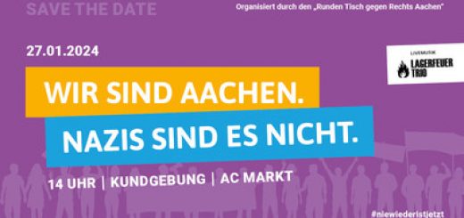 WIR SIND AACHEN. NAZIS SIND ES NICHT. Kundgebung am Holocaustgedenktag, 27. Januar 2024 14 Uhr am Katschhof, Markt, Büchel Beteiligt sind die Oberbürgermeisterin, Vertreter aller Aachener Fraktionen, Kirchen, Gewerkschaften und weiterer Verbände. Damit soll...