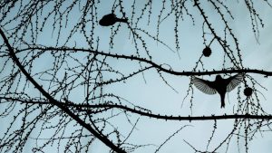 Alpenbirkenzeisige Im Scherenschnitt