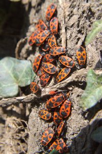 Zwei Dutzend Feuerwanzen und eine rote Samtmilbe